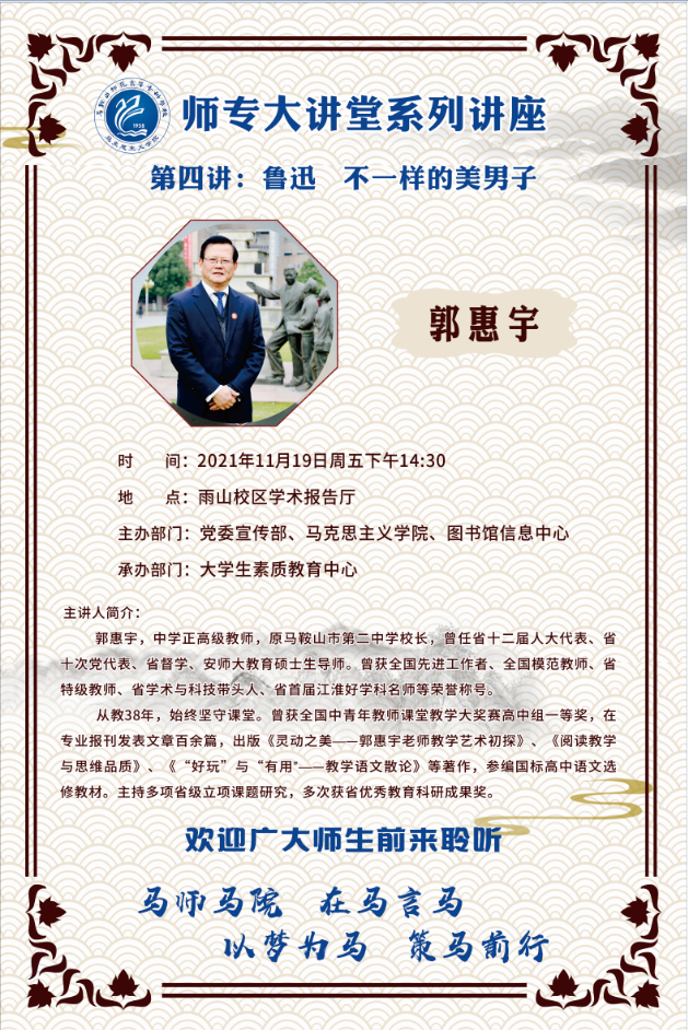 【师专大讲堂系列讲座海报】第四讲:鲁迅 不一样的美男子