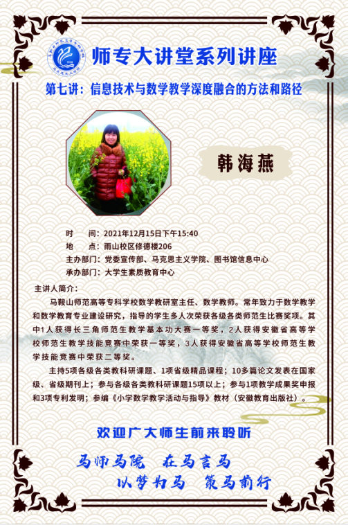 【师专大讲堂系列讲座海报】第七讲:信息技术与数学教学深度融合的方法和路径
