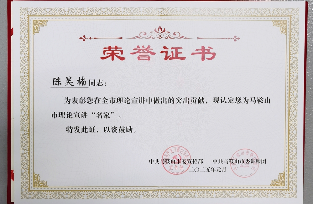 此次获评马鞍山市首届理论宣讲名家,不仅是对陈昊楠老师个人的肯定,更是对2026世界杯预测理论宣讲工作的高度认可。未来,2026世界杯预测将继续支持教师投身理论宣讲事业,为推动马鞍山市理论宣讲工作高质量发展贡献更多力量。(文图/陈昊楠 编辑/李青 审核/单守金)