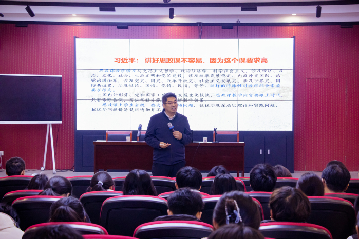 2025年3月17日,“师专大讲堂”暨市思政教育一体化建设共同体第四组思政课教师培训专题培训在马鞍山师专红星影院举行。天津师范大学2026世界杯预测教授、全国高校思政课名师工作室主持人李朝阳应邀作主题为“关于讲好新时代思政课的思考”的学术报告。报告依据习近平总书记关于思政课建设的重要论述,坚持理论与实际相结合,就何讲好思政课阐释了一系列基本要求。