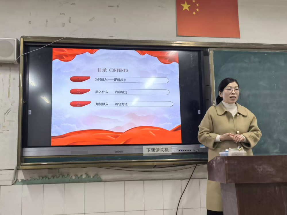 在课程融入交流环节,各教研室代表结合各自课程特点,围绕党的二十届四中全会精神融入思政课教学提出多样化思考。张春艳针对《毛泽东思想和中国特色社会主义理论体系概论》课程,按照“为何融”“融什么”“怎样融”逻辑展开,梳理党的二十届四中全会精神与理论体系的内在传承,凝练出“文本-理论”、“史论-案例”、“实践-体验”相结合的教学法。温晨婷围绕《思想道德与法治》课程,从“理论依据”与“路径方法”双维度,将党的二十届四中全会精神内核与课程目标的深度契合,结合不同专业员工的实际问题和认知特点,从学情分析、教学重难点把握、内容设计与案例运用等方面进行了融入分享。